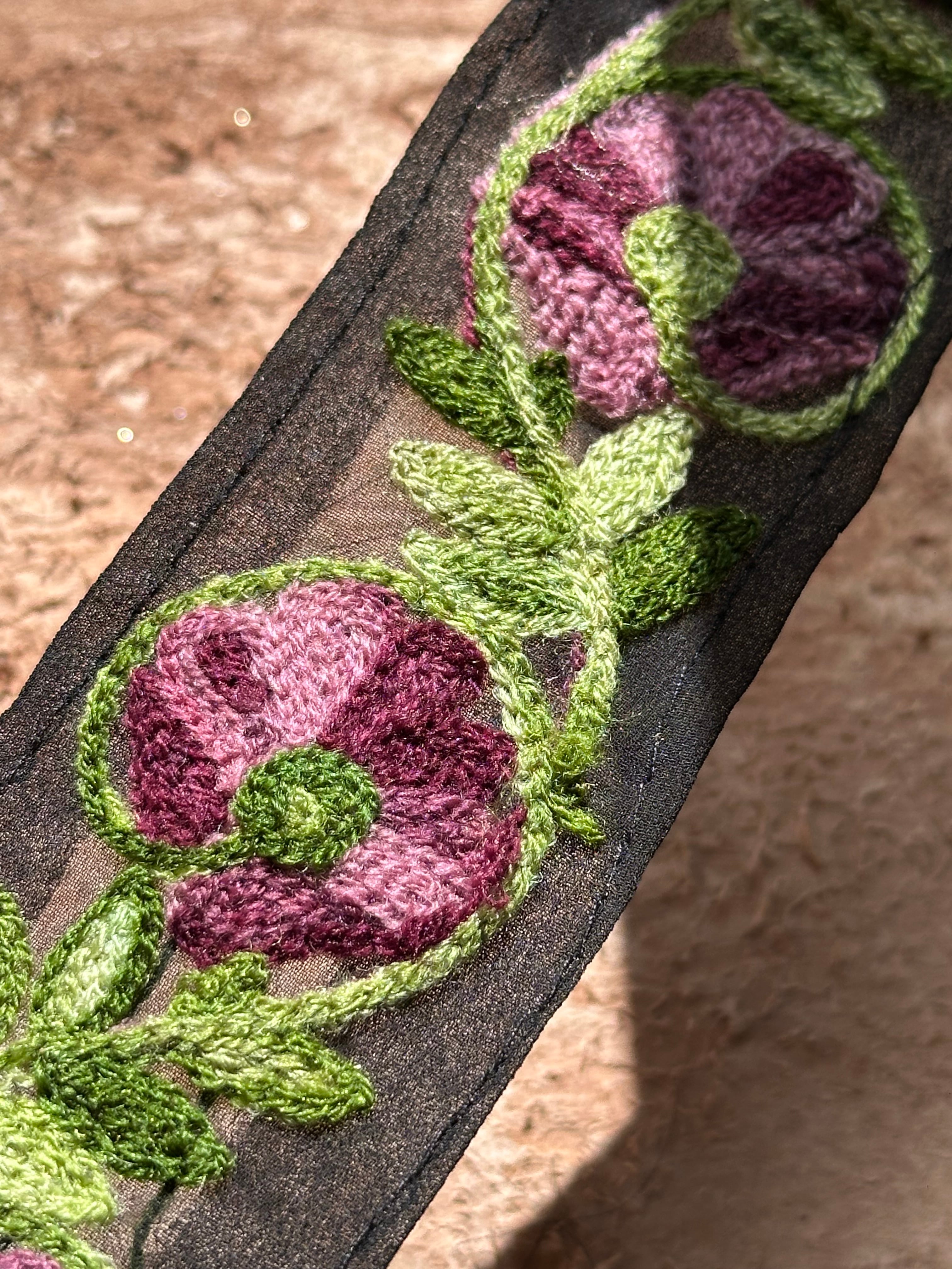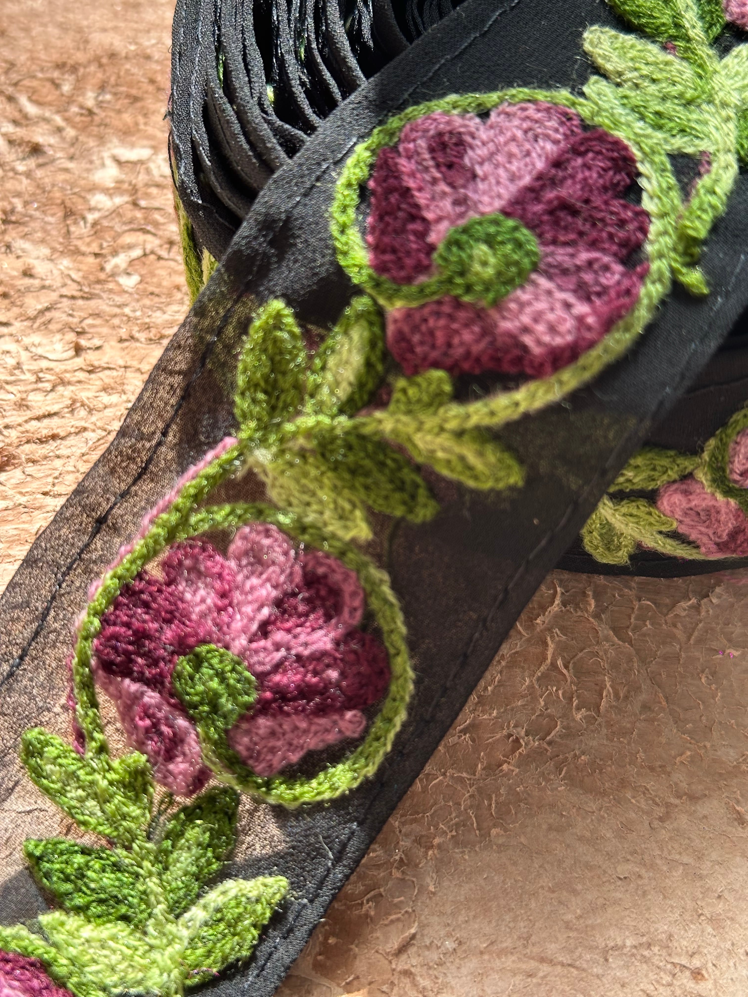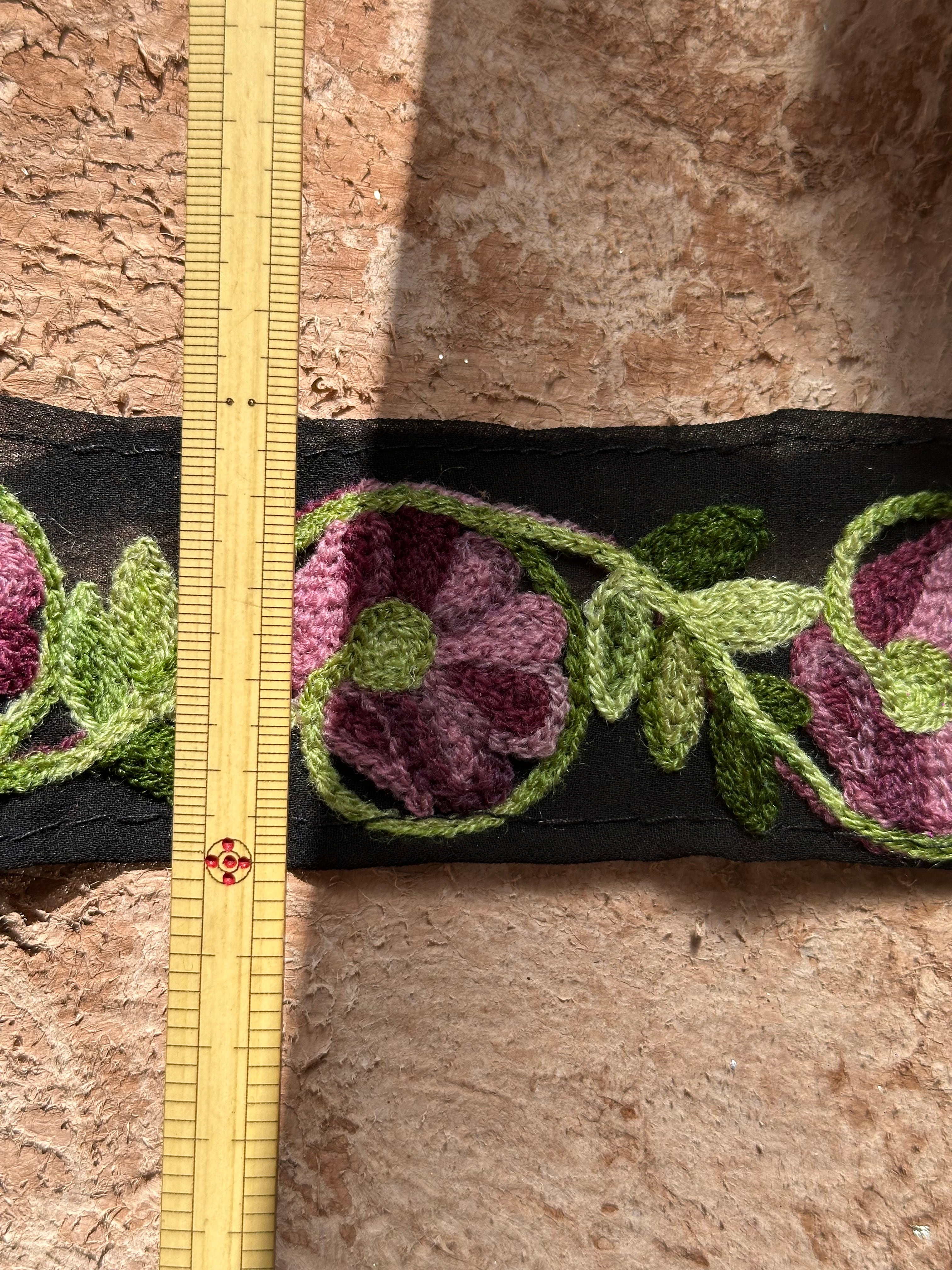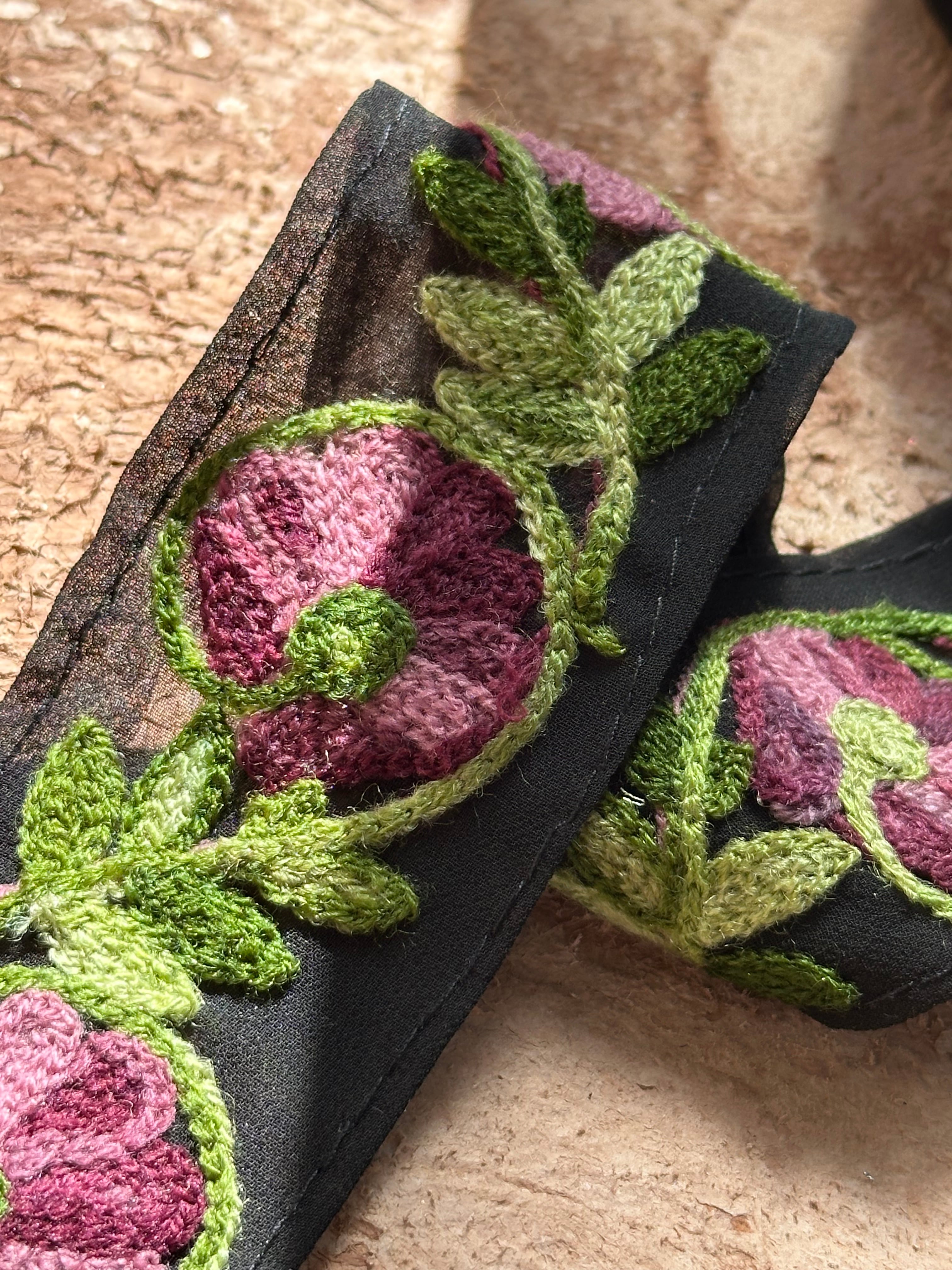 毛糸のような糸で施されたチェーンステッチの